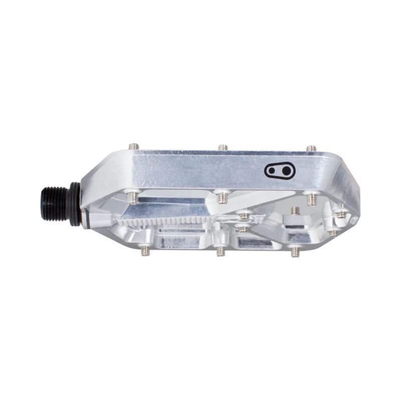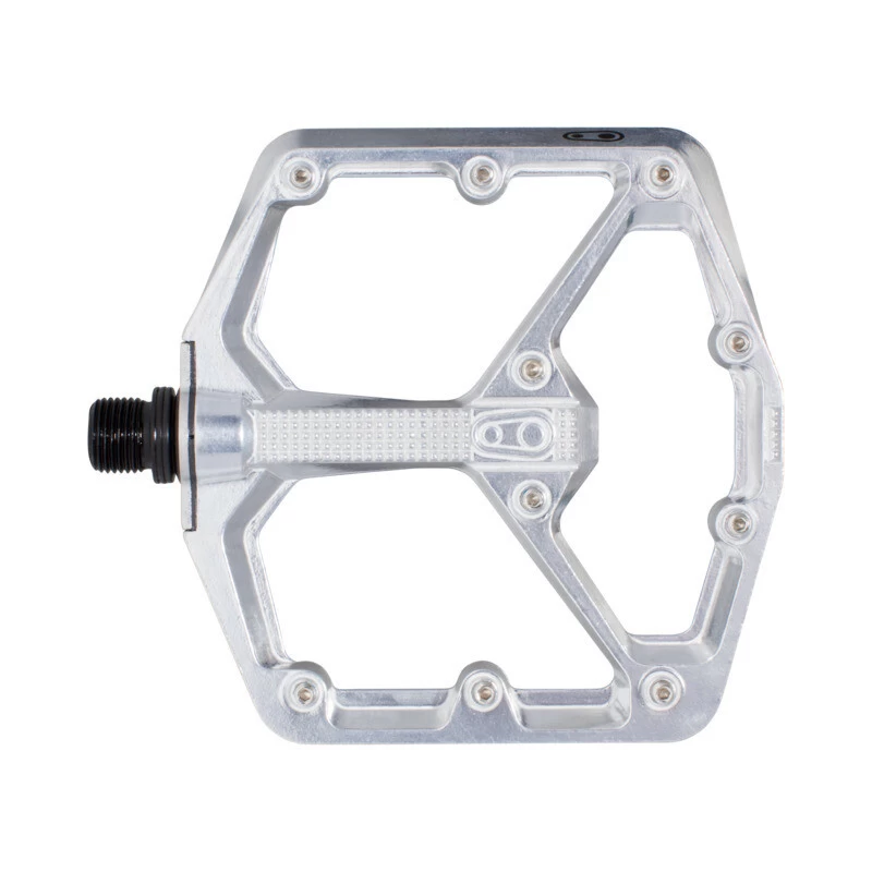 Grössenspezifisches konkaves Plattformpedal auf Profi-Niveau bietet eine optimale Schnittstelle zwischen Schuh und Pedal.