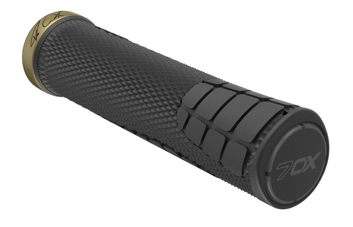 Der 70X Griff kommt passend zur Fabio Wibmer Line im schwarz/goldenen Design. Der Gravity- und Downhillgriff bietet maximale Kontrolle und Grip im groben GelĂ€nde, auch bei NĂ€sse und Schlamm. Die besondere Textur der Vorder- und Unterseite bietet in jeder Situation einen optimalen Halt. Die Klemmung an der Innenseite erhöht die DĂ€mpfung und den Komfort an der HandauĂenseite, zusĂ€tzlich unterstĂŒtzt durch die neue Shock absorbierende Gummimischung. FĂŒr das Plus an StabilitĂ€t sorgt die FaserverstĂ€rkte InnenhĂŒlse. Entscheidend fĂŒr einen sicheren Halt in jeder Situation ist die individuelle Griffweite. Die GröĂen des 7OX Fabio Wibmer Griffes unterscheiden sich in Durchmesser und Form.
